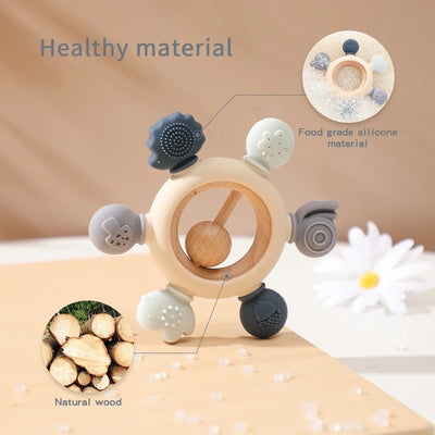 다양한 질감의 실리콘과 너도밤나무로 만든 치발기/딸랑이로 호기심 많은 작은 손과 입을 즐겁게 해주세요. BPA가 없는 식품 등급 실리콘으로 제작된 독특한 디자인은 안전하고 감각적인 탐색을 가능하게 하며 아픈 잇몸을 안전하게 진정시키는 데 적합합니다.