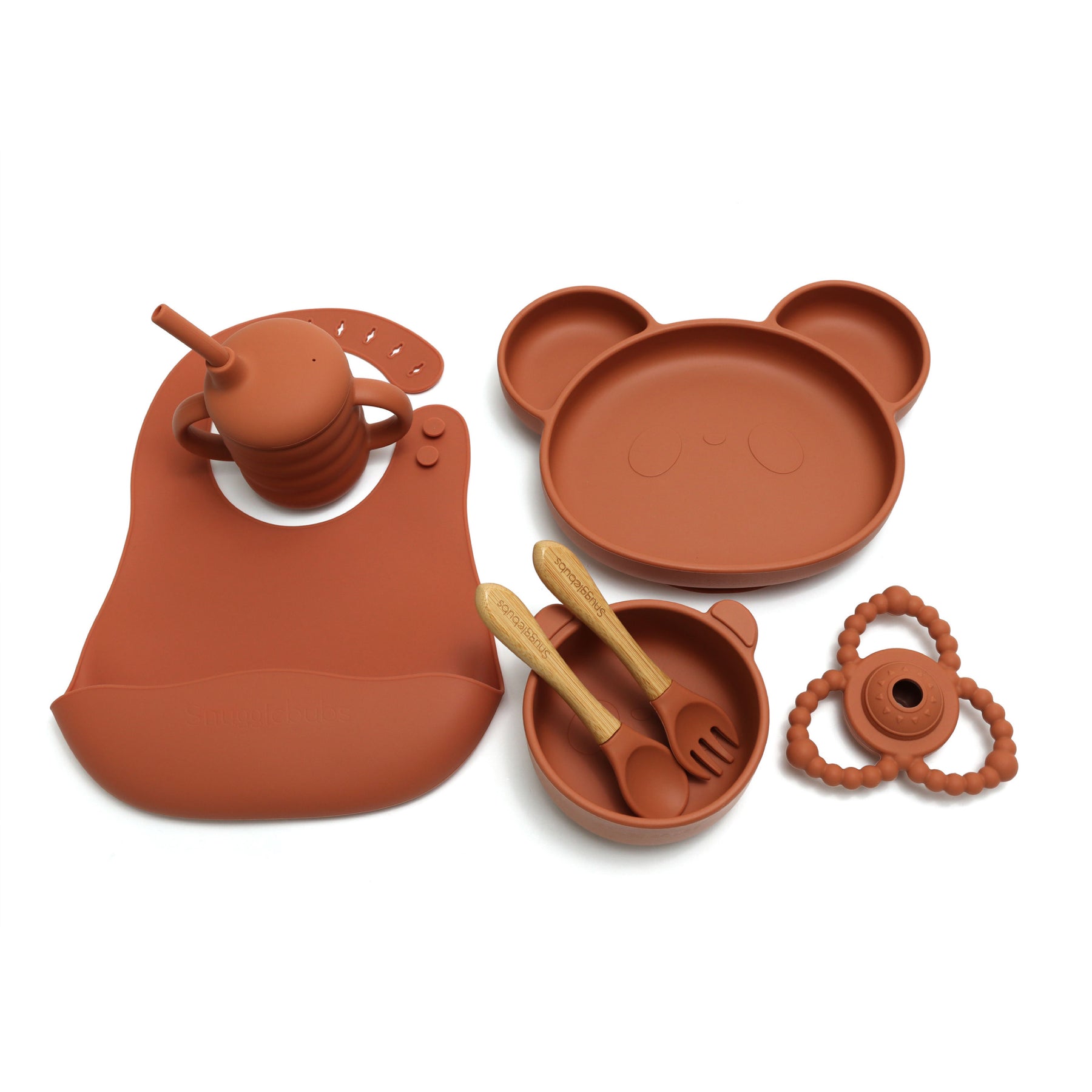 TERRACOTTA 7 PIECE SILICONE BABY AND TODDLER NON-SLIP SUCTION CUP FEEDING SET